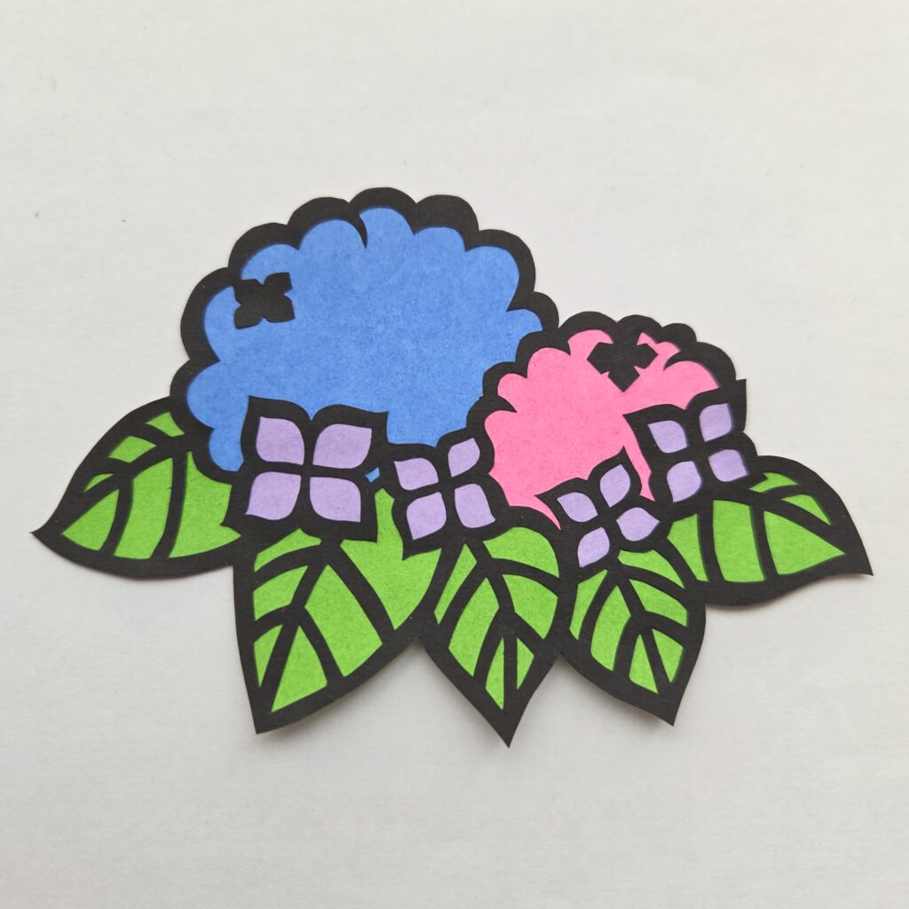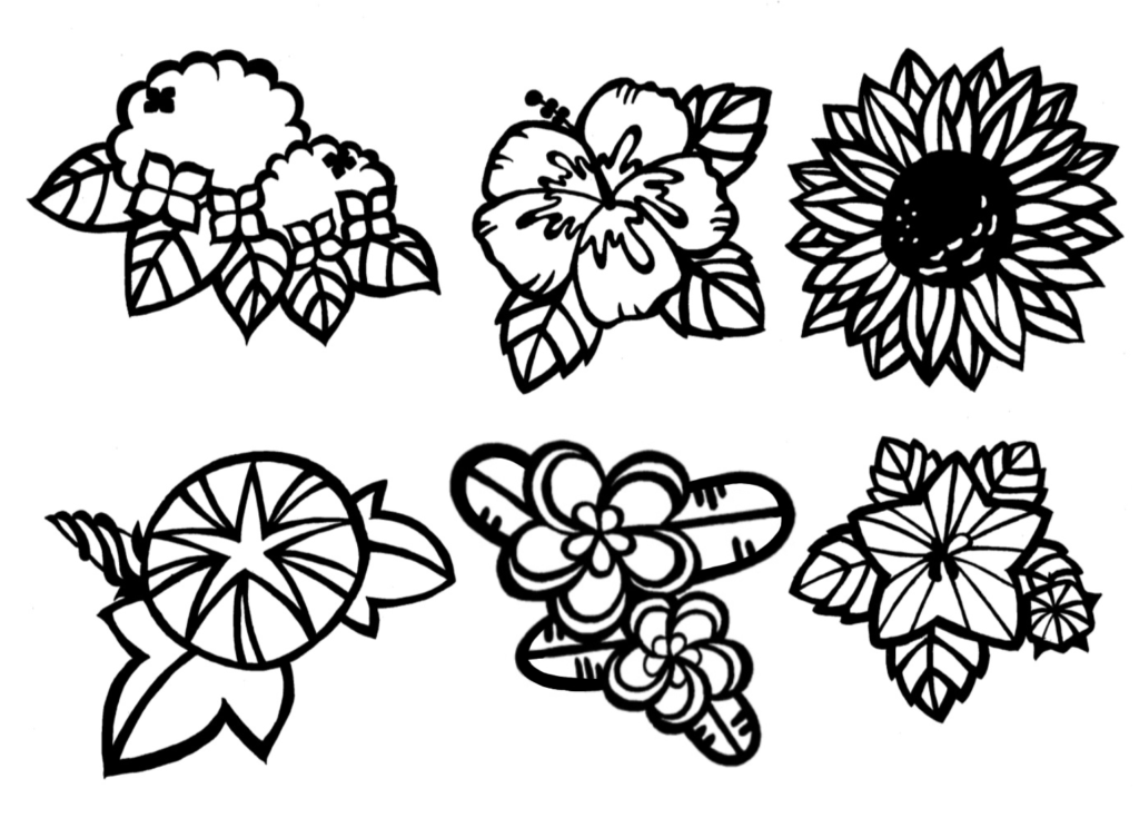 夏の花(紫陽花・ハイビスカス・向日葵・朝顔・プルメリア・桔梗)/切り絵図案