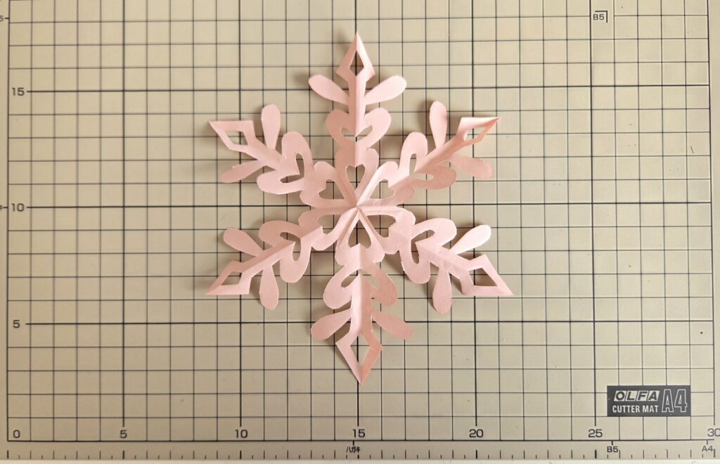 冬の切り絵といえば、まず思い浮かぶのが雪の結晶。六角形のシンメトリー構造が美しく、1枚作るだけで冬の雰囲気が広がります。